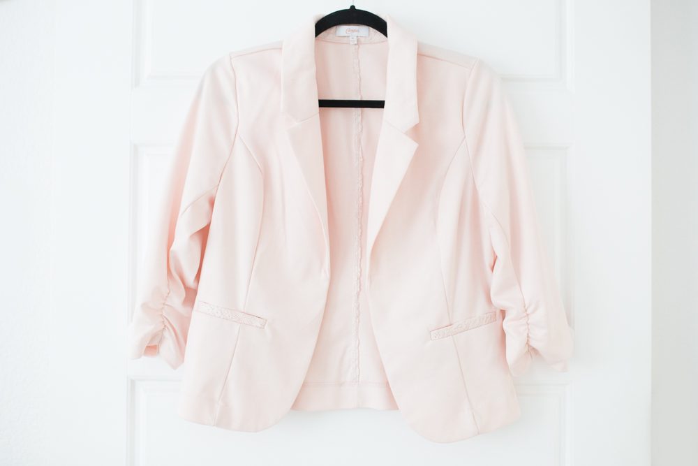 The deep V blazer has an added bonus. It’s slim point creates the visual illusion that your waist is much, much smaller!